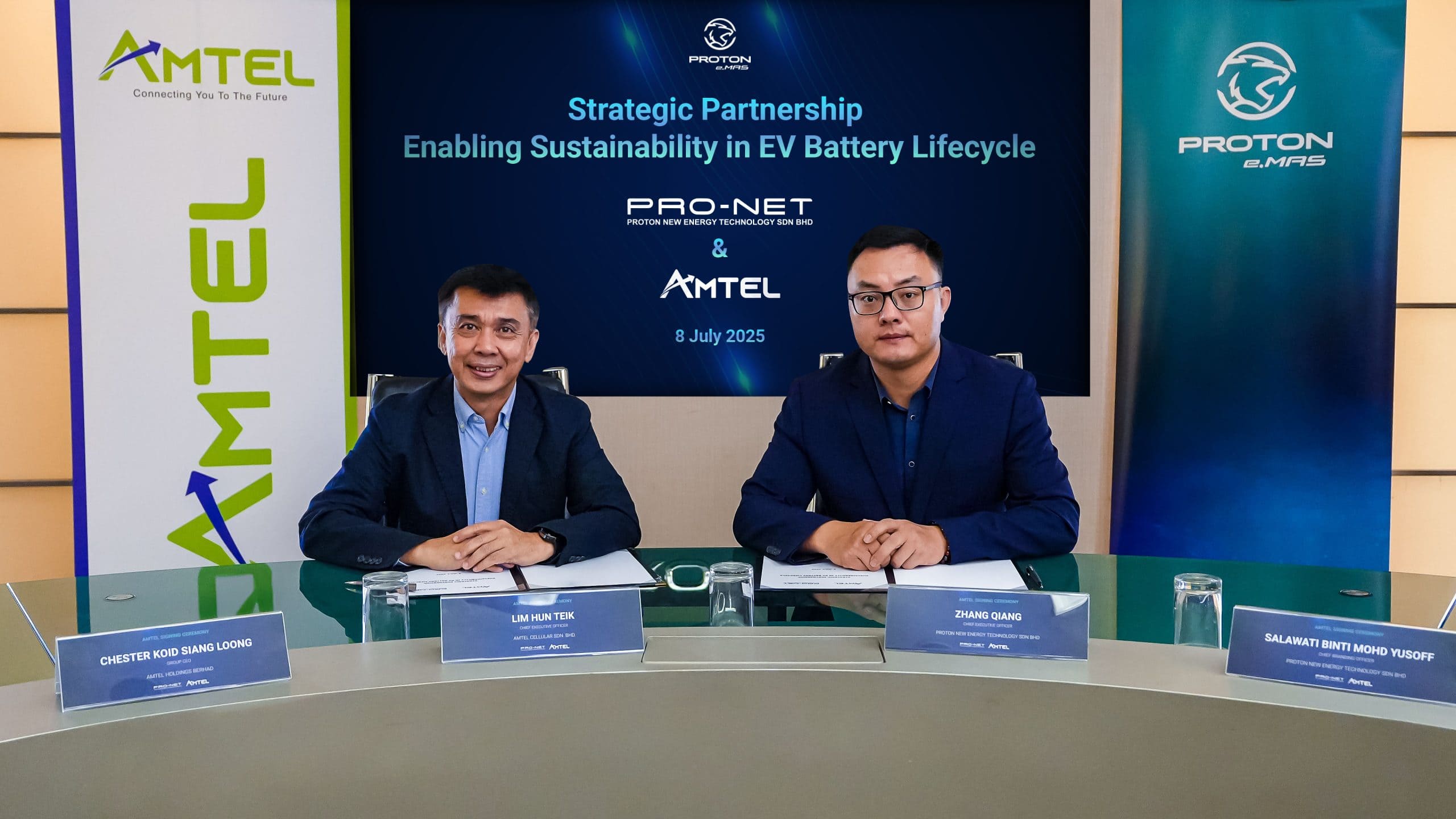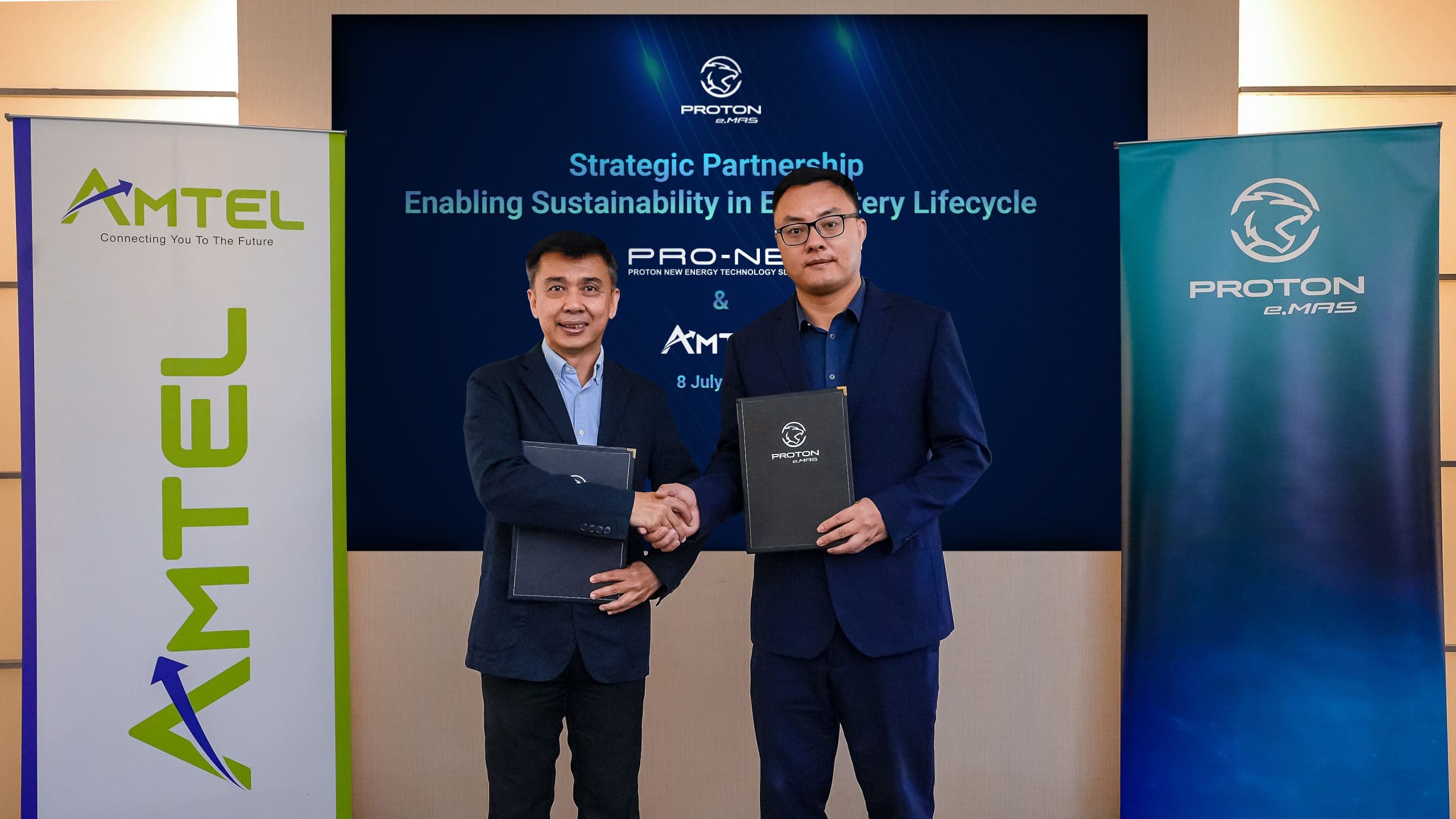 Subang Jaya, 9 July 2025 – Proton New Energy Technology (“PRO-NET’), the new energy subsidiary of national automaker PROTON, today signed a Memorandum of Understanding with AMTEL Cellular Sdn Bhd (“AMTEL”) a subsidiary of AMTEL Holdings Berhad, for the proper transportation, disassembly and disposal of electric vehicle (EV) batteries.